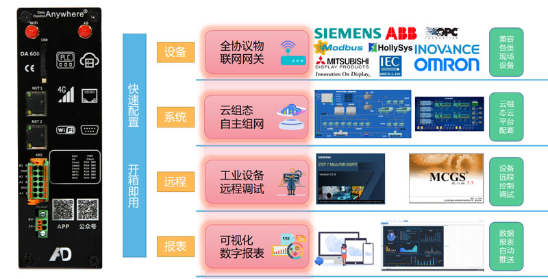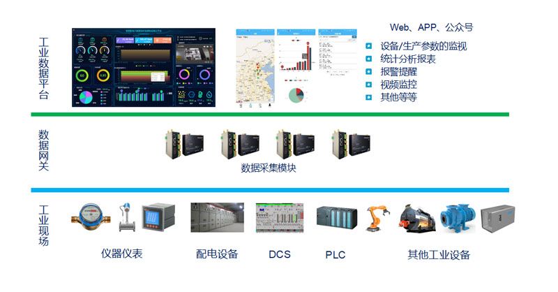 1、解決了工業生產過程中分散單元的數據采集問題,可以支持采集多種單元的數據,通過多種傳輸手段,對多種協議的數據,進行傳輸。實時掌握每臺設備在 使用當中的實時狀態、輔助管理者進行設備使用的優化決策、幫助運維者優化設備的使用工藝。
